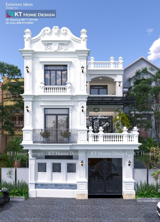 Dự án Thiết kế biệt thự 3 tầng  – …PN được thiết kế kết theo phong cách tân cổ điển, sang trọng, với những đường nét hoa văn tinh xảo và gam màu trắng chủ đạo tạo nên vẻ đẹp thanh lịch