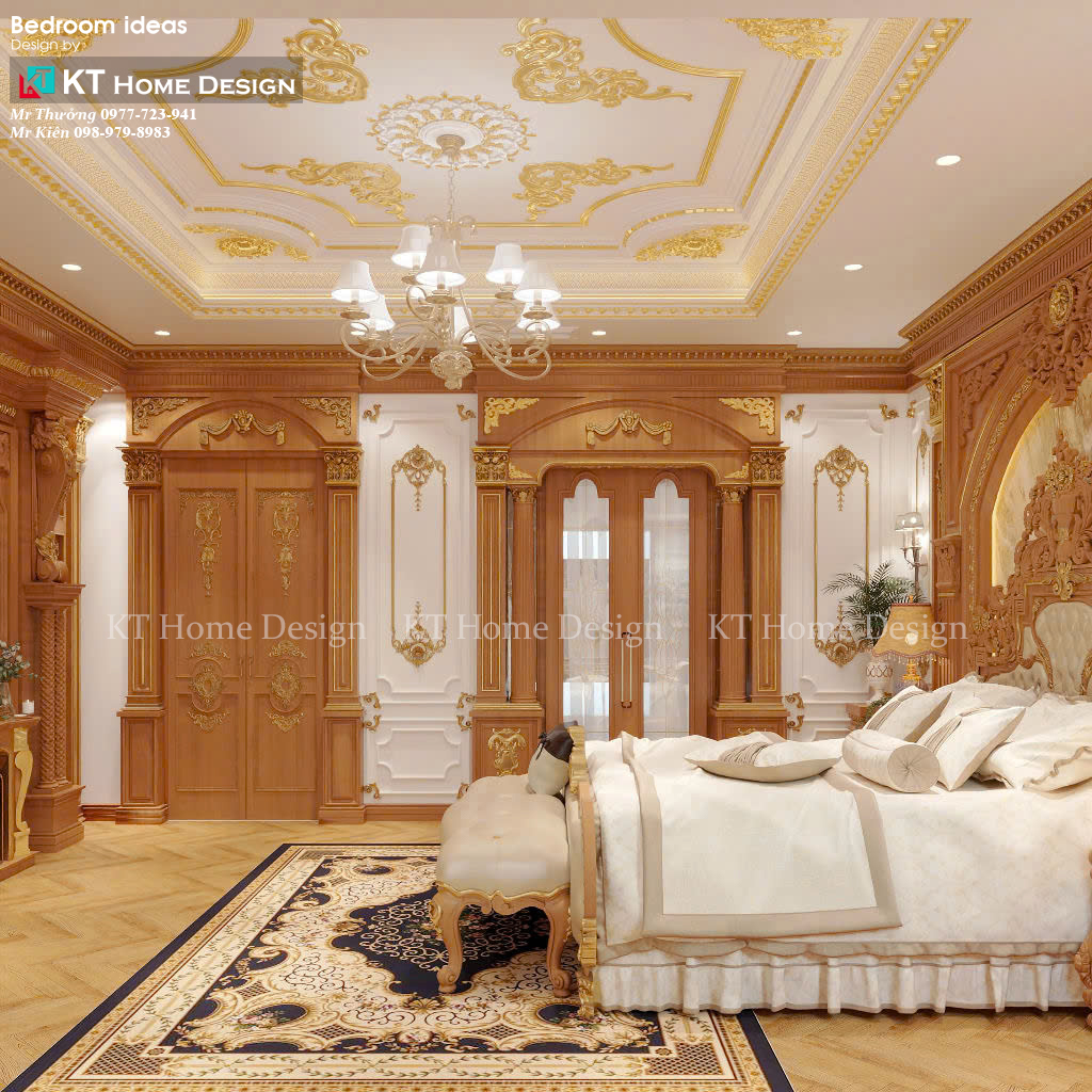 Trần nhà ốp gỗ kết hợp đèn chùm pha lê, tạo cảm giác ấm cúng nhưng vẫn đẳng cấp.