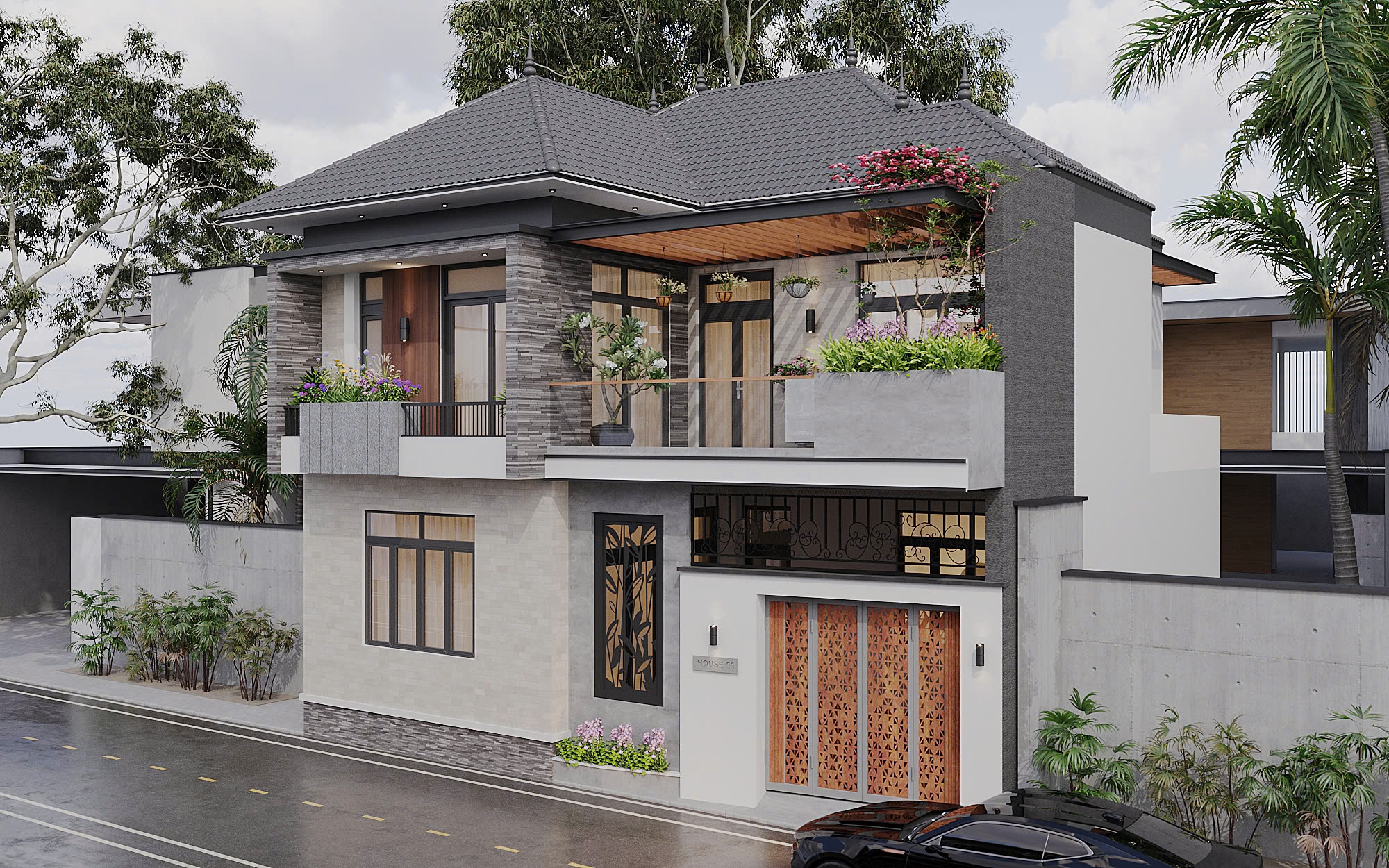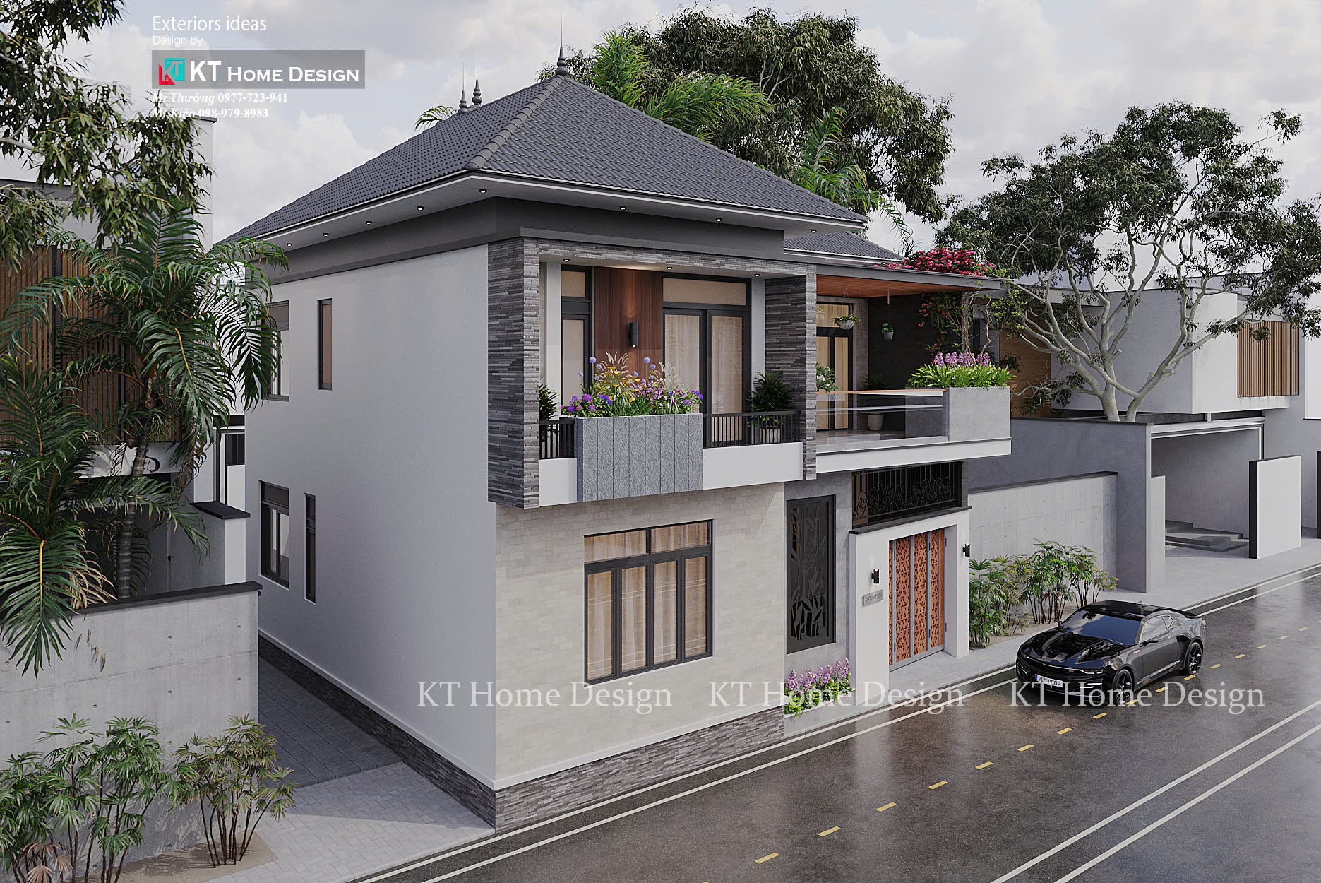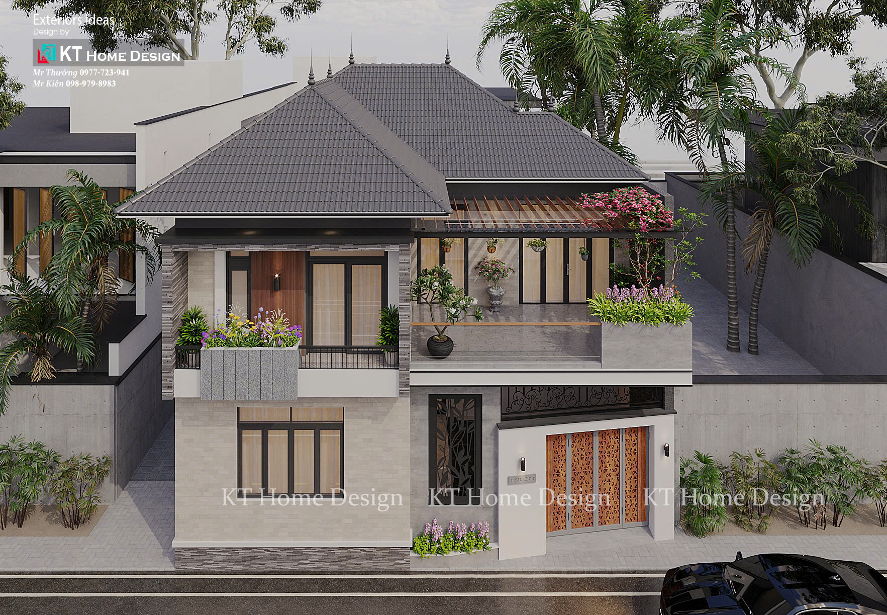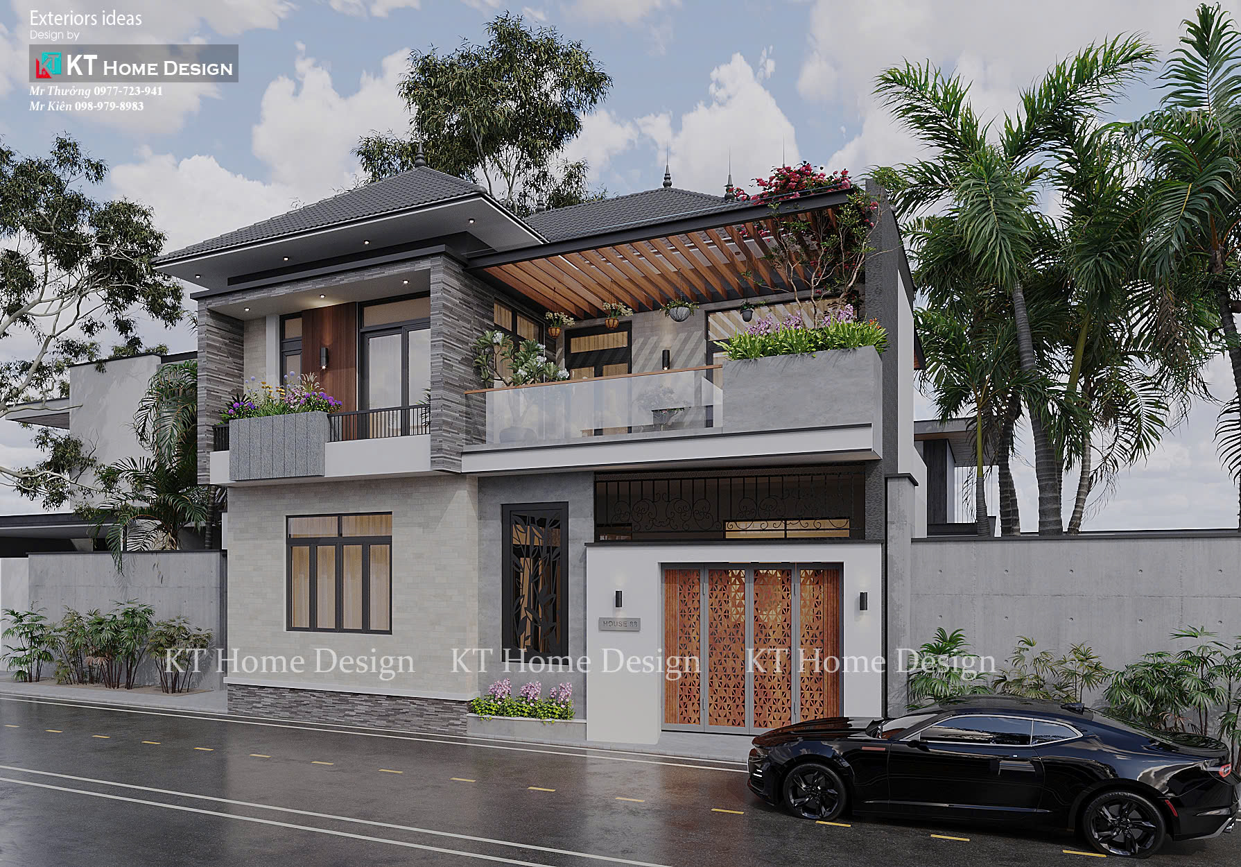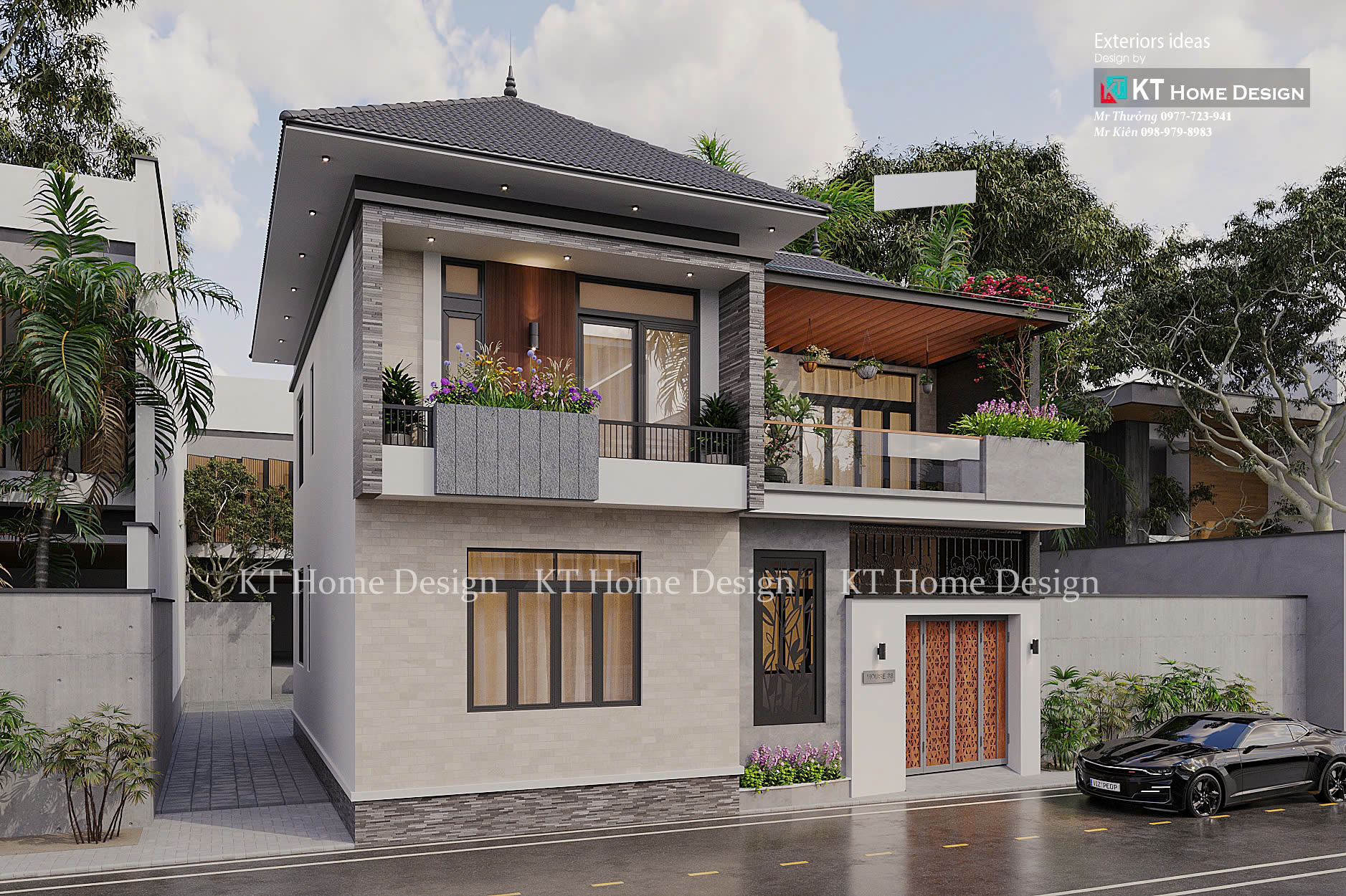 Phong cách: Hiện đại kết hợp mái Nhật (mái dốc nhẹ, có chóp đỉnh)