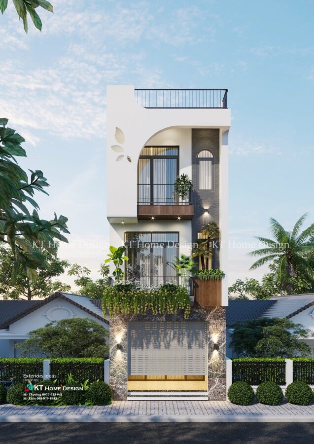 - Nhà có thiết kế 3 tầng theo phong cách hiện đại, phù hợp với diện tích mặt tiền nhỏ.