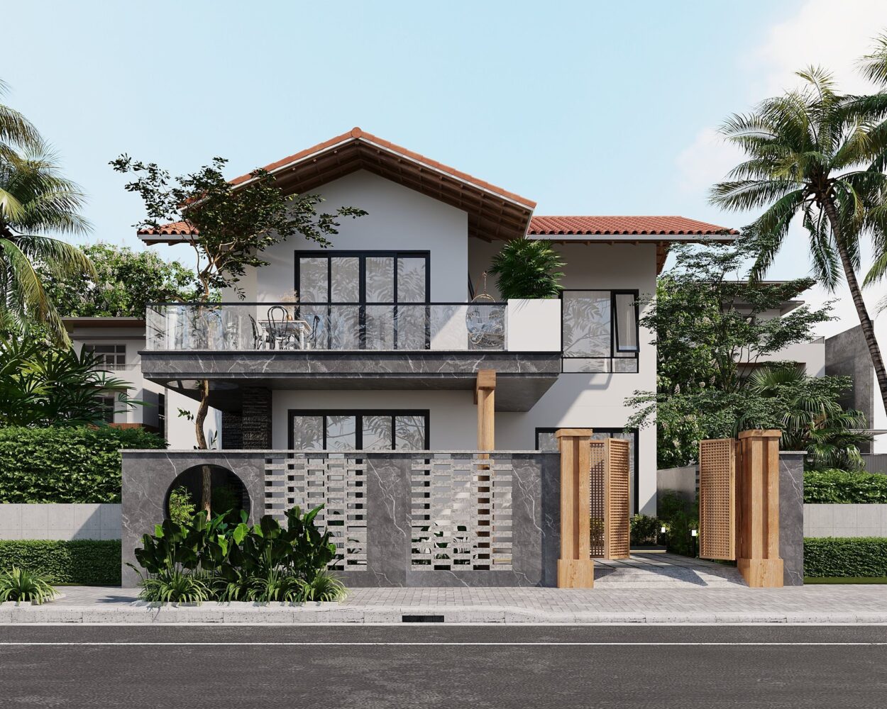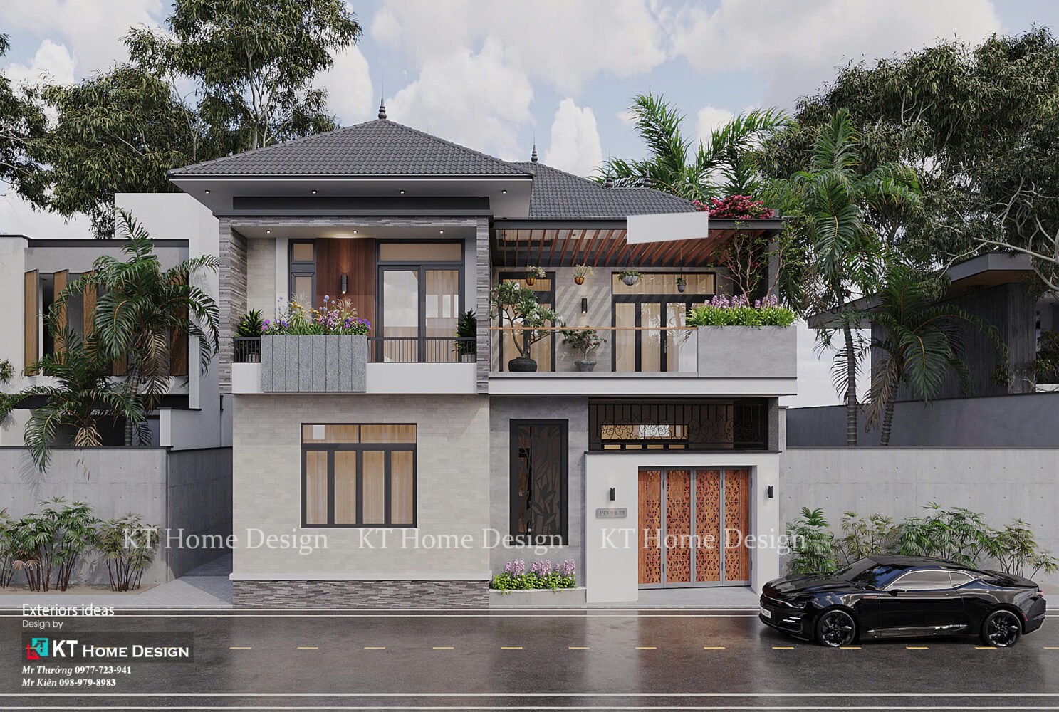 THIẾT KẾ NHÀ PHỐ HIỆN ĐẠI 2 TẦNG – MÁI NHẬT